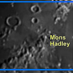 Telescope Objects>Research Best TimeMons Hadley is a massif at the northern terminus of the Montes Apenninus, and close to the Apollo 15 landing site.
