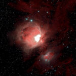 M43 / NGC 1982 | Recorded on the same date as M42, presumably as part of his publication push, Messier's entry explains: "(March 4, 1769) `Position of the little star surrounded by nebulosity & which is below the nebula of the sword of Orion. M. Messier has included it in the drawing of the Great [Nebula].'" <--> Frankly, I didn't know this bulb on top of M42 had its own Messier number until my quest to observe all 110. It is a "miniature" M42, birthing a single star. M42 has a long history, as it's really a naked eye object, but the nebulosity was discovered in the 17th century. M43 itself was described by Jean-Jacques d'Ortous de Mairan circa 1731. The boundary separating it from M42 is the "northeast dust lane". This image shows it well, though my original target was M42 (see wide view). At the time the only telescope I owned was the EVO 9.25, and this was the widest view I could achieve at the time, focal length of roughly 1,500mm using a reducer. I've always thought it resembles one of the non-edible berries on bushes from my childhood, which I discover now is an English Yew Tree.... see gallery. |