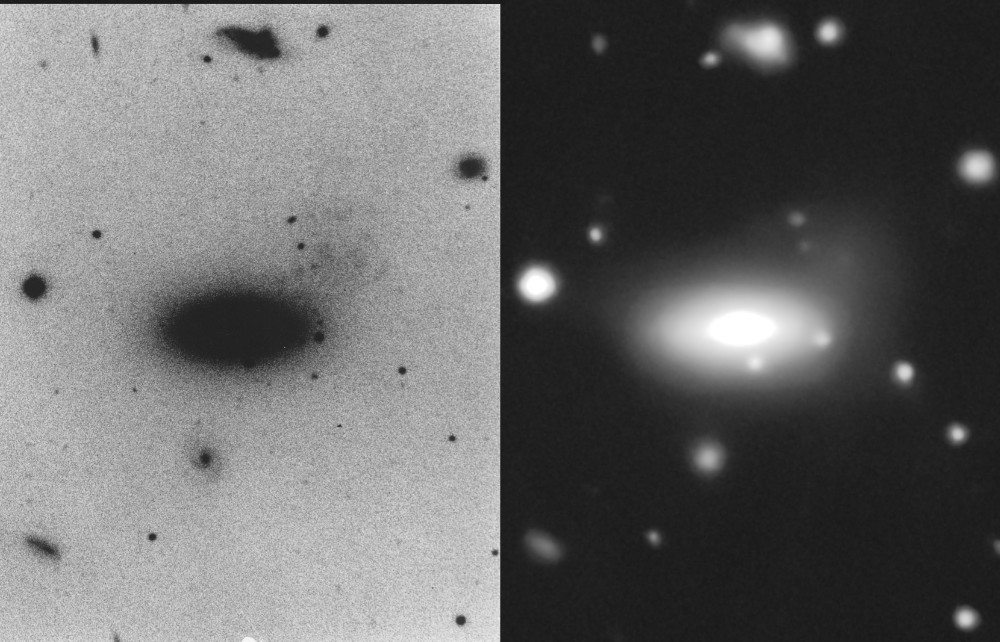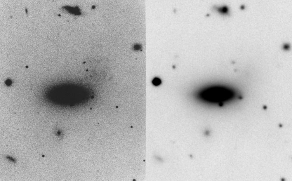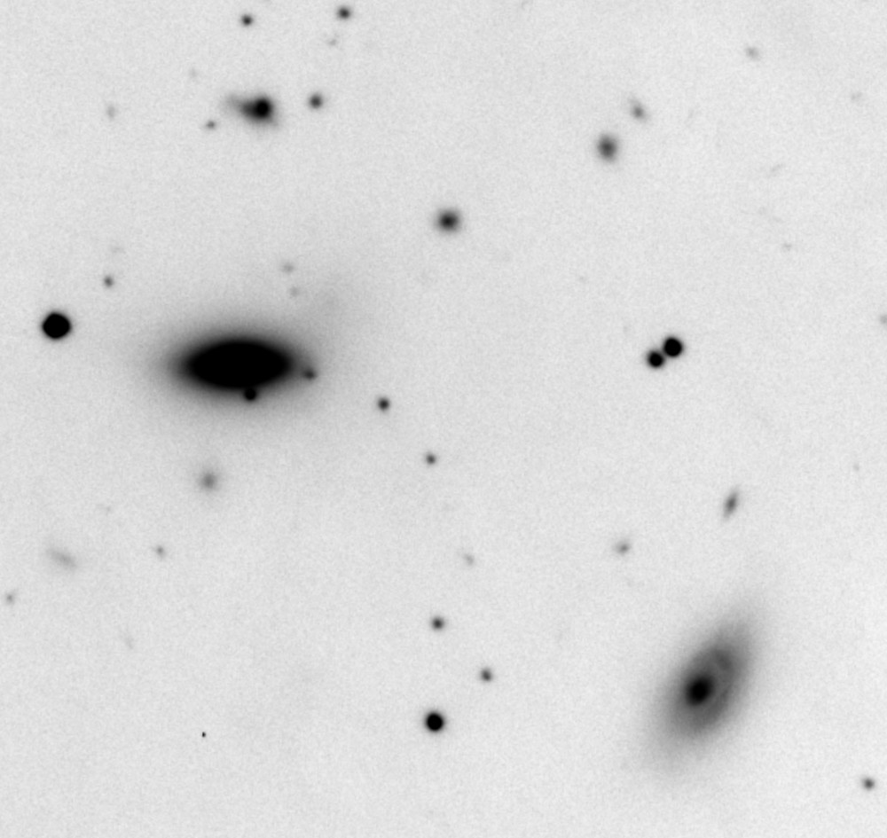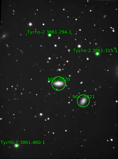 The big issue in my mind is what's causing the plume... It looks like a tidal wake if the galaxy were being pulled down and rotated clockwise by something quite powerful, below and to the right. The best candidate for that is actually outside of Arp's frame, but well in mine, which is NGC 5821... Clearly that's not what Arp had in mind, since he didn't include NGC 5821 in the Atlas image. Maybe he didn't have an explanation in mind, was just noticing the peculiarity. |