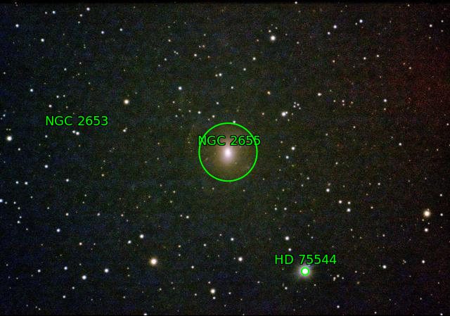 DescriptionAmorphous spiral arms indeed! They are shaped a bit like loose outer leaves of skunk cabbage, with the nucleus as flower. During capture the amorphous arms were just perceptible on my SharpCap live stack, which means that post-processing was required to make them visible in the final web images. The core and central disk are quite evident, but the arms are diaphanous. Arp's remarks also call out an absorption, the zit-like feature on the SSW (1 o'clock) edge of the nucleus: "Very faint diffuse outer arms, absorption one side of nucleus". Interesting that it's the diffuse arms he chooses to categorize.