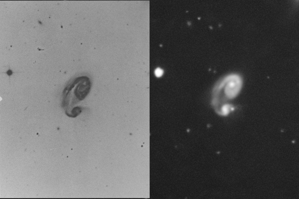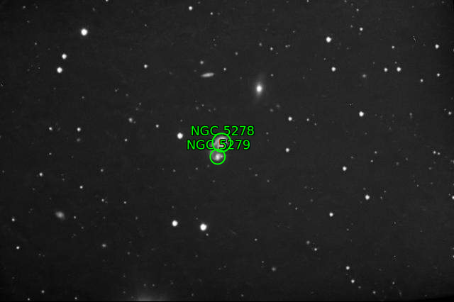 | Description | Two, reasonbly bright NGC galaxies pretending they're M-51. There's an obvious connection from 5278, the larger galaxy, to 79 via a heavy arm. Less obvious connection between the two nucleii. This is yet another example of Arp's reluctance to see merging or "fusion" between two galaxies. What gives this the "appearance of fission" is a mystery to me. |