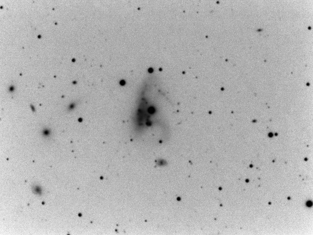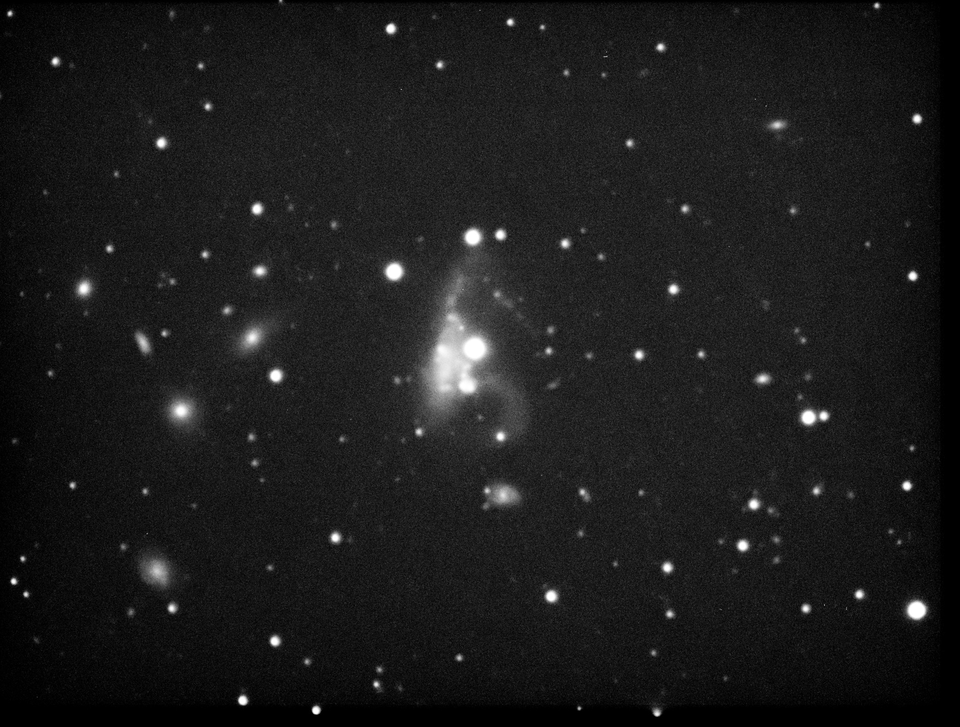 DescriptionArp categorizes this as a galaxy with irregular clumps, and notes, "Diffuse outer filaments, bright knots inside." It certainly has all of that. The modern consensus seems to be that this is a post-merger galaxy that hasn't yet fully assimilated its quarry. Started observing this after transit. As it descended, the lowering angle made it more susceptible to cloud cover. I eventually had to give us with less than 30m.