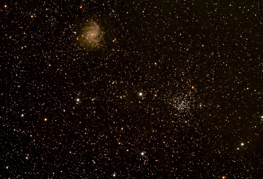 DescriptionOriginally discovered by William Herschel in 1798, and included in Halton Arp's Atlas of Peculiar Galaxies. As is often the case with Arp, there's some ambiguity about which is the "heavy" arm, though I believe it's the one towards the bottom of the frame. My Evolution telescope had a mirror diagonal in the image train; the image was flipped in the comparison to Arp's capture. This was literally the first, successful capture of a faint Galaxy in my EAA career. There had been a painful learning curve leading to this point: I was required to capture both darks and flat frames. It was also my second attempt; two days earlier I had captured the galaxy but the focus was horribly off. This capture was my personal, "I love this!" moment. I had no notion of Arp at the time, but in retrospect, this experience started me on the path to the Arp Challenge because this is when I learned that challenging targets are the most fun. I've added to the gallery a "bonus" image of Arp 29 and the open cluster NGC 6939, imaged with my 600mm refractor in August 2023.