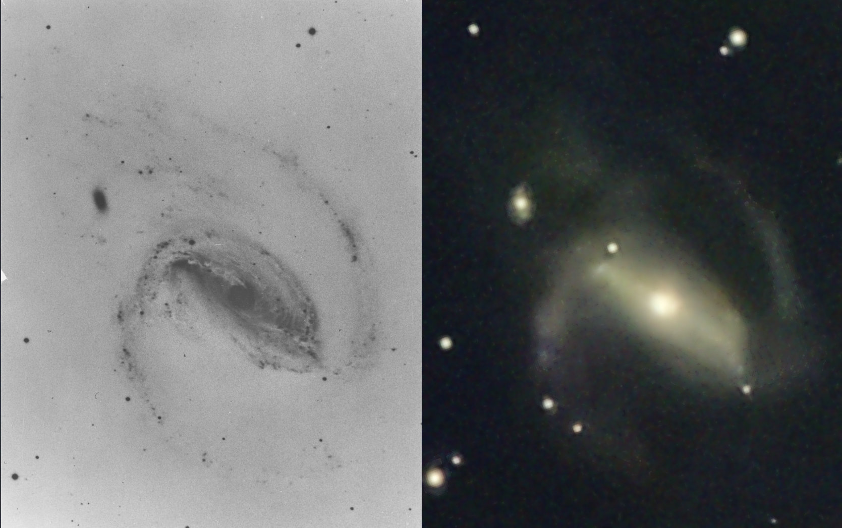 | Description | This was an unplanned, unexpected observation. I woke up at 4:50 AM and noticed the skies were clear. Looked in SkySafari at the unobserved objects in the Caldwell list, and saw that C67 was barely above the horizon, but pretty far west at 211° azimuth, near where the best horizon from my backyard starts. Current elevation was a little over 13°. Decided to attempt a capture using my Seestar -- my only choice, really, given that nothing was ready. By 5:10 the Seestar was assembled, set out on my deck, and capturing images. I'm astonished how well it all turned out. This is my 149th Arp capture, but the first with the Seestar. The comparison image to the plate from the Atlas (see gallery) shows the little Seestar did pretty well. Arp's remark, "Material of arm seems to flow 'around' comp[anion]" is nearly as evident in my image as in the Atlas image. At 9.5 magnitude this is one of the brightest Arp galaxies (exempting the 11 Messier galaxies he included), and at 9.4 x 6.6 armin, one of the largest. Sunrise was 6:48, and imaging so far west I was hoping to capture more time. But elevation was now only about 10°, a ground fog came up, and the Seestar could no longer stack. Still, with a little help from Noise-X-terminator and Affinity Photo I feel it did well. |