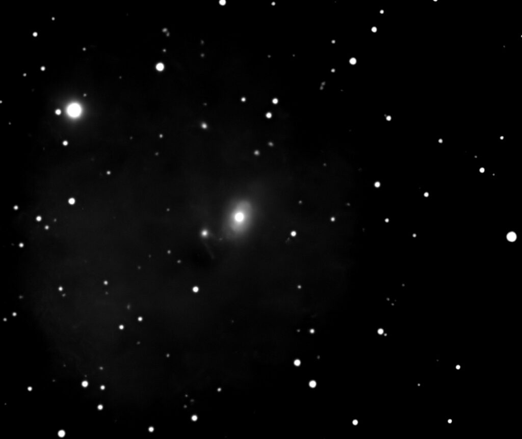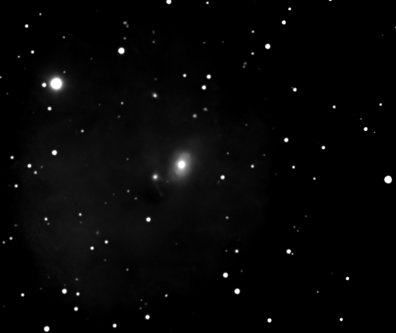 | Image Details | Up is 354.4 degrees E of N. Transparency: Fair. Seeing: Fair. Total integration time was 84m. Exposures 15s@300g, No Filter. Dithered and recentered in SharpCap. No guiding. |