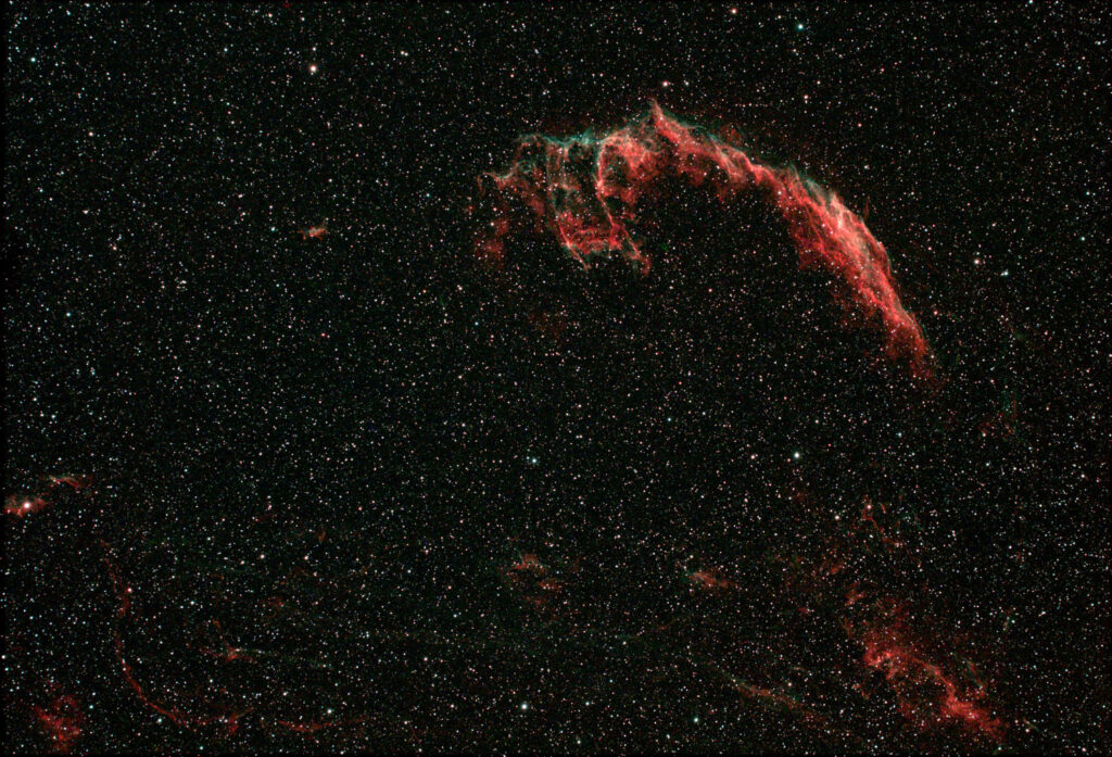 DescriptionI usually prefer to image the Veil Nebula in its entirety. But I was at a star party on a clear night, with my 600mm Askar, and decided to image this piece of it.