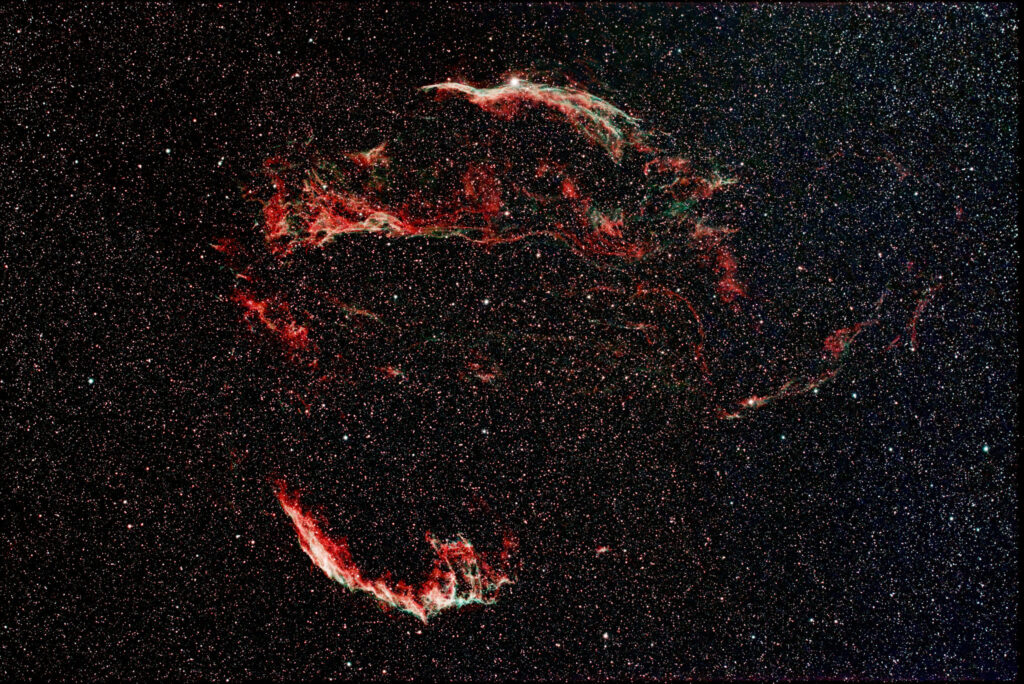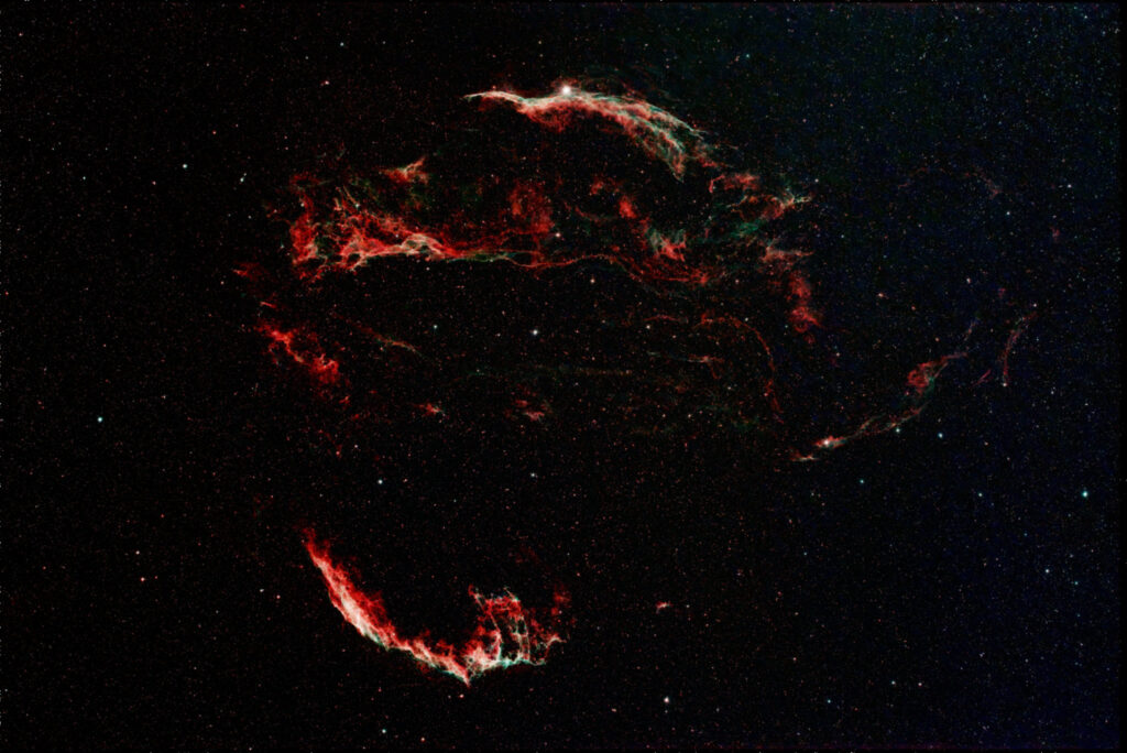 | Description | The CN September 25 Challenge was the excuse to revisit this favorite target, taking advantage of my new 2600mc camera, allowing me to image the full Cygnus Loop with the 270mm configuration of my Askar V. Applied some fairly sophisticated processing to the stretched .png including NoiseXTerminator and star reduction... I've included both reduced and original star images in the gallery, You obviously see the Veil more clearly with stars minimized, but you miss the larger point about where it's located when you do that. Two other visits linked. As this is a favorite Star Party target, I've visited it countless more times. |