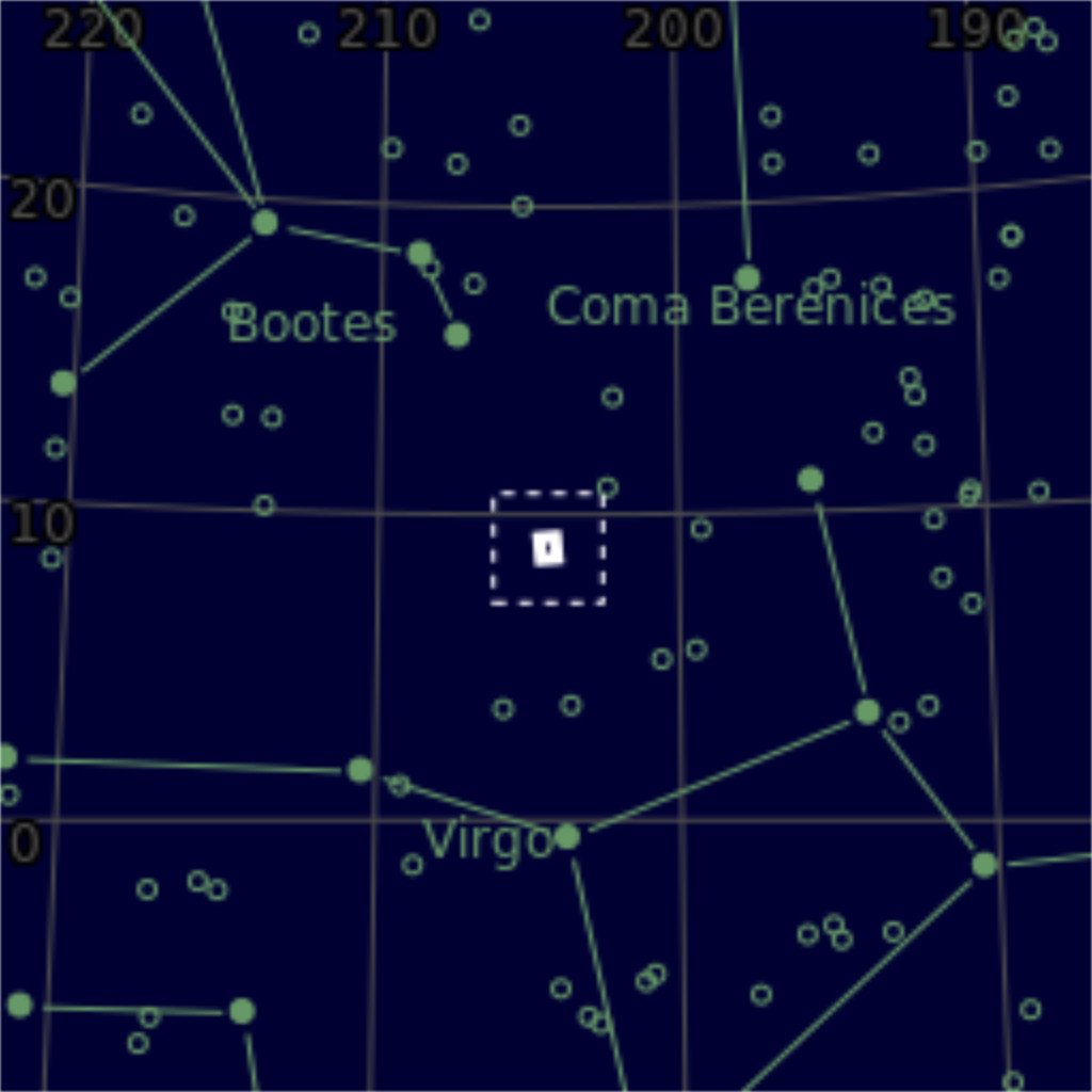 DescriptionThis is a very pretty intermediate spiral galaxy, meaning the central core is elongated, but does not quite form a bar. This is probably easiest to see in the inverted image provided in the gallery. This is a "Virgo III" galaxy, an eastern extension of the Virgo Supercluster which are structures most visible in the spring and make it "galaxy season" to amateur astronomers. Like so many other objects, it was discovered by William Herschel on April 15, 1784.