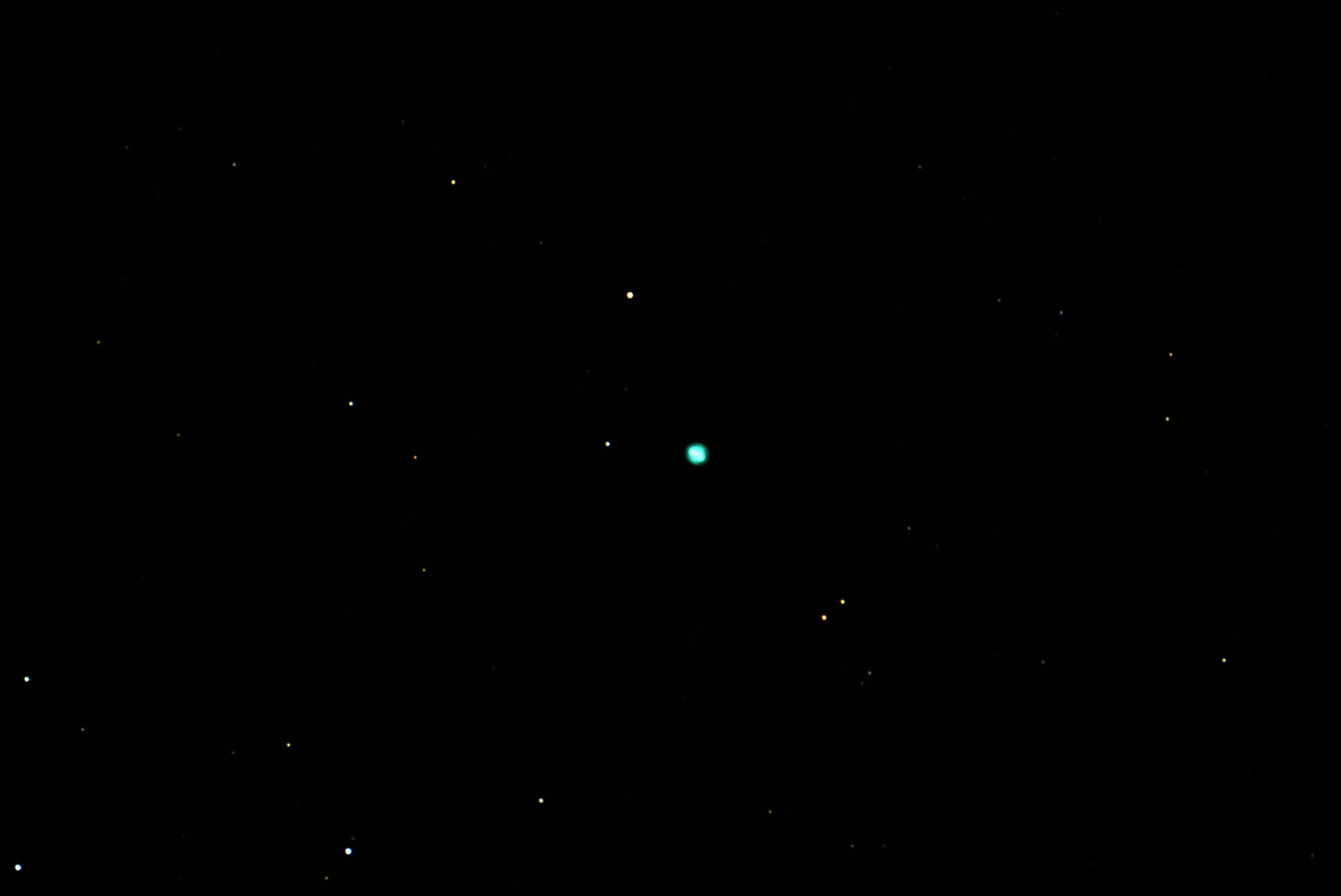 | Description | Captured right around astronomical dusk, at roughly 20° altitude, with a thin cloud layer playing havoc with transparency. This part of the sky happened to be reasonably clear at the start, then clouded up, cutting short my desire to continue gathering data. Another William Herschel discovery, this one from 1781. Color on this object is very much dependent on where you set the color sliders. I was looking for a neutral background, so these colors popped out. |