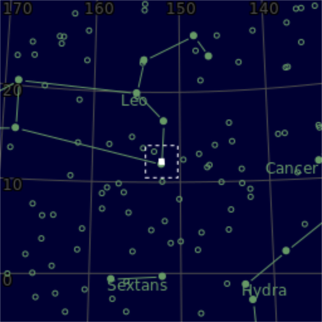 | Description | This object wasn't discovered until 1950 as part of the Palomar Sky Survey using the 48" Schmidt telescope. It's pretty dim, though made more difficult to observe by its proximity to Regulus. At 850,000 light years away, this is thought to be the most distant dwarf galaxy gravitationally bound to the Milky Way. My first observation in a while. Seemed reasonably clear, but then clouds moved in and cut this observation short. |