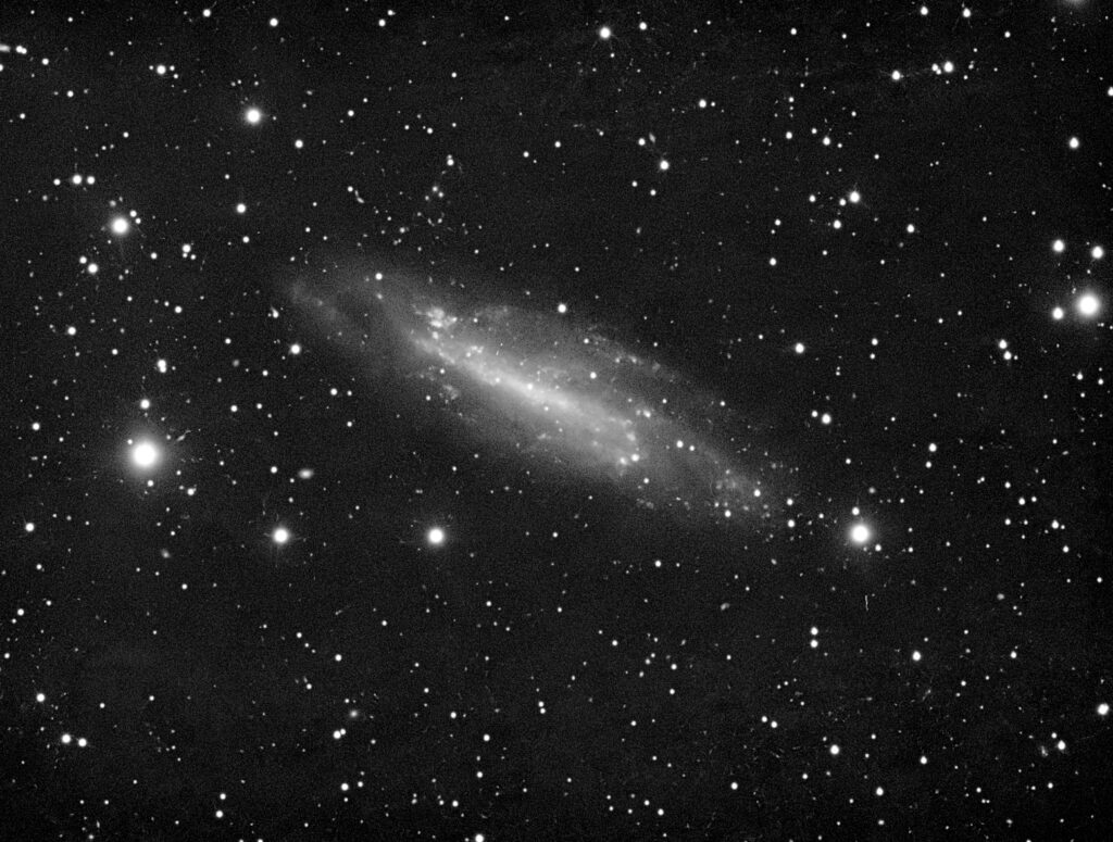 DescriptionC3 is a surprisingly challenging object, discovered by William Herschel in 1793. Categorized as a "Magellanic" spiral, which is a new term to me: it means "one armed". This is another galaxy that could have been an Arp Peculiar Galaxy, but isn't. The "one arm" is at the far side, and much lower surface brightness than the core (certainly) and the rest of the disc as well. So it's hard to see without sufficient integration. My final image processed in Affinity photo does show it reasonably well. The inverted image in the gallery does an even better job.