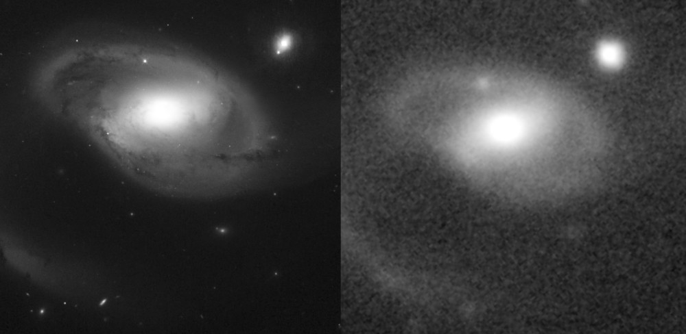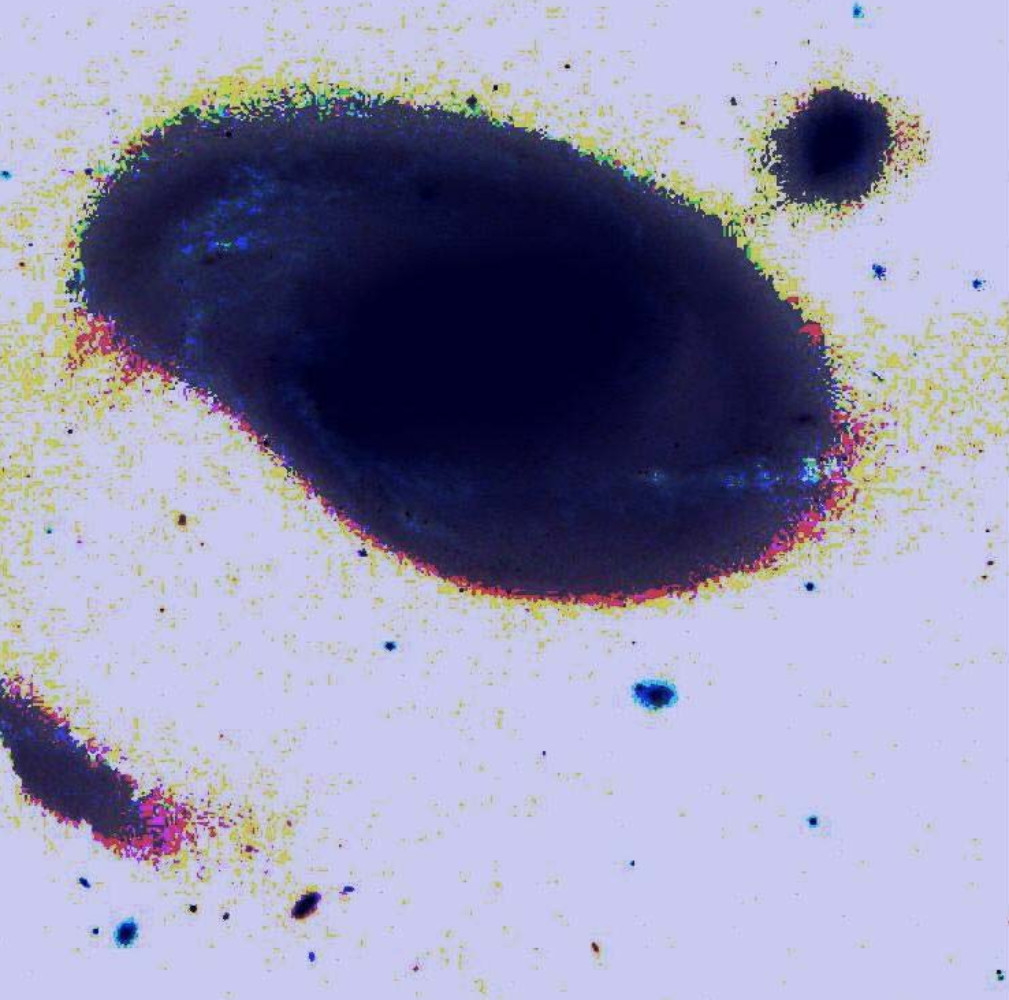 The Hubble image in the gallery is an interesting Rorschach test around this issue. To most, it's a definitive proof that the quasar is by chance located behind the outer fringe of NGC 4319's disk. However, it doesn't take much processing to make a non-random-looking bridge appear. In the gallery, I've included an image from haltonarp.com, as well as a levels adjustment to my own inverted image. Arp's insistence on continuing to explore this theory got his telescope observing time on the Palomar telescopes -- most importantly the 200" Hale Telescope -- axed by the allocation committee. At the time, it was unheard of to not allow a Senior Observer time on the instrument... Arp quit and spent most of his remaining career at the Max Planck Institute... also freed his time to work with Barry Madore on the Catalogue of Southern Peculiar Galaxies and Associations. |