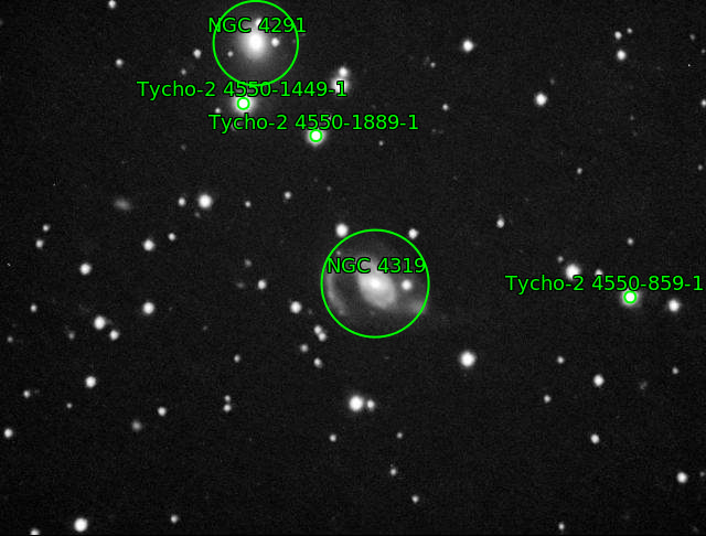| Description | A famous object because it's the target that inspired Halton Arp's "intrinsic redshift" theory that alienated him from mainstream astronomy. I observed it because I'm giving a talk to my astronomy club this fall about The Atlas of Peculiar Galaxies...to be clear, this isn't part of the Atlas (it was discovered later), but it had a huge impact on Arp's career. Markarian 205 is the small object immediately to the right of NGC 4319, a quasar. Arp saw a filament connecting it to the larger galaxy, even though 205 has a much higher red-shift. Arp theorized it had been formed by ejection from 4319 and as new matter, started with a higher, "intrinsic" red-shift. The mainstream felt it was simply a chance alignment of the quasar behind a closer object.