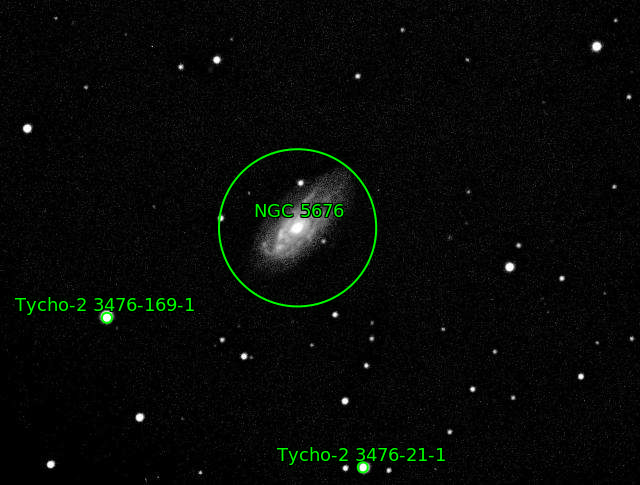 | Description | Captured on a full moon night that started somewhat smoky but improved as the night wore on. This is a fascinating galaxy, highly asymmetrical with an extended tail to the upper right, and a oddly configured arm in the lower left. The spiral pattern, while evident, is choppy (hence flocculent). |