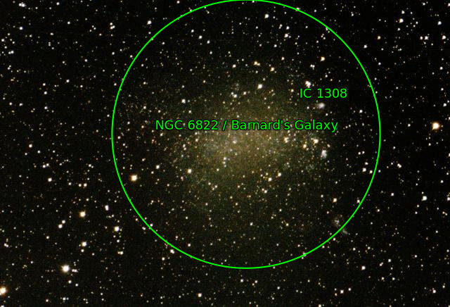 DescriptionDiscovered by Edward Emerson Barnard in 1884.. He first cataloged it as a faint nebula. This is a not very exciting-looking galaxy, but one extremely important in the history of astronomy, as it was the first galaxy where Hubble applied a Cepheid variable technique to measuring astronomical distance. His paper published in 1925 estimated the distance to Barnard's Galaxy at 698,000 light years. This was more than 2x the size of the "universe" -- still considered limited to the Milky Way -- estimated at 300,000 light years by Harlow Shapley. Hubble's 1929 paper measuring the distance to Andromeda, using the same technique, is considered the most important in the history of cosmology, but the techniques had been perfected on Barnard's Galaxy, and established that galaxies were separate "island universes" outside of the Milky Way. Personally, while this 9/23 observation was routine, my first attempt -- early in my EAA career -- to observe Barnard's had been a disaster, as I pointed at a blank spot but mistook uncorrected amp glow from my camera for an emerging galaxy and ended up spending an hour uselessly.