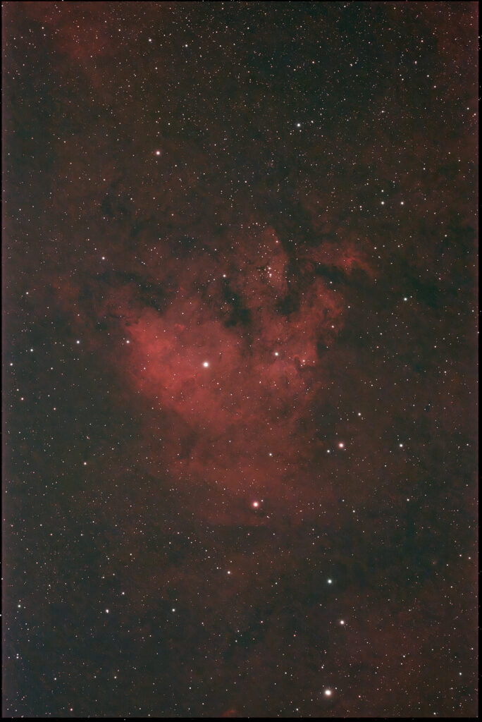 | Description | This is a fascinating star birthing region similar to the famous "Pillars of Creation" within the Eagle Nebula, and not that different from other famous nebulae such as the Orion, Lagoon, or Trifid. Those have the advantage of being extremely bright, and listed in the oldest astronomical catalog still in use: the Messier list. Still, if you have imaging capability, this is of the same caliber as those much better known targets. |
