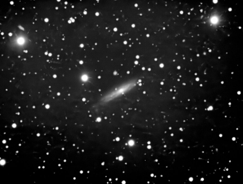 DescriptionAn edge-on spiral thought to be supporting an AGN. Discovered by an American astronomer, Lewis A. Swift in 1885.