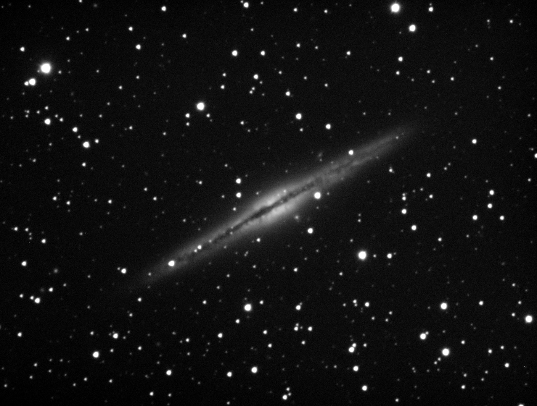| Description | A dramatic side-view galaxy that clearly tickled the fancy of Patrick Moore. |