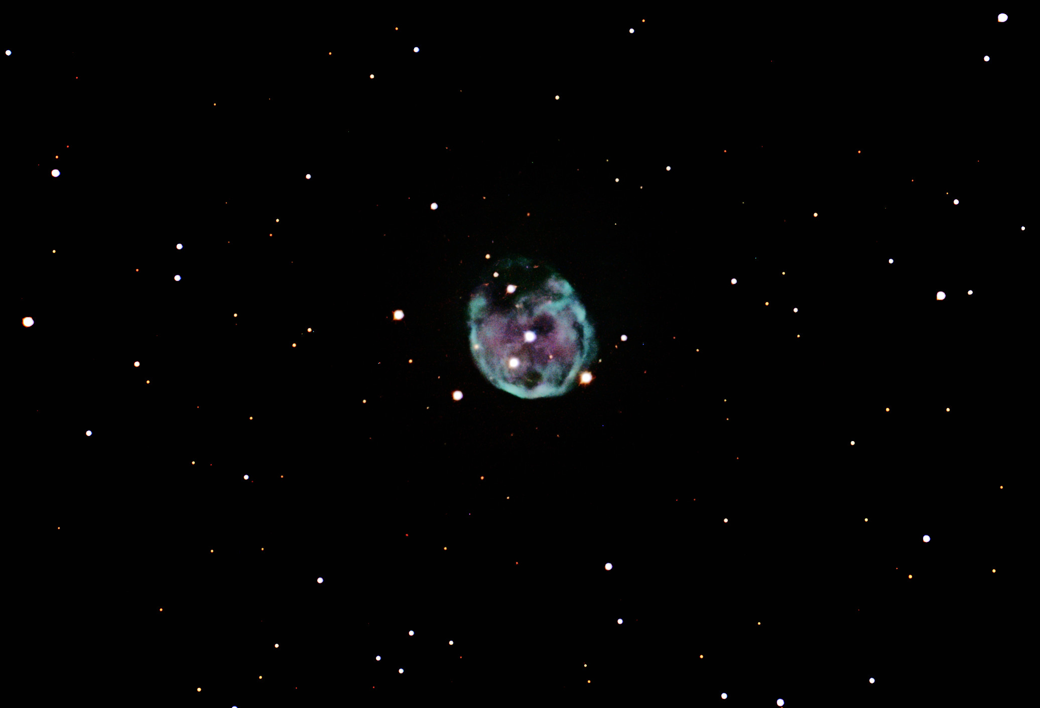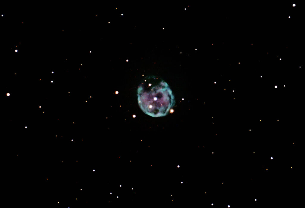 | Description | A William Herschel discovery from 1785. In 2014, the European Very Large Telescope discovered a second companion to the central star, making it currently the only known example of a planetary nebula with more than two central stars This nebula is never terribly high in the sky in the Catskills, but I caught it on a decent night immediately post transit and managed a reasonable integration period. It's an eerie capture that's challenging and satisfying. |