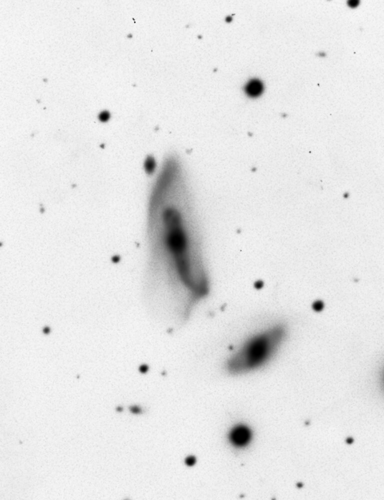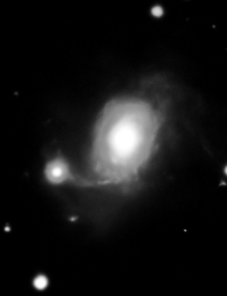 A cornerstone of Arp’s “Intrinsic Redshift” debate. The companion galaxy has a very different redshift, and in 2001 two Spanish astronomers discovered 2 quasars perfectly aligned in the filament (not visible in my or Arp’s original capture)
