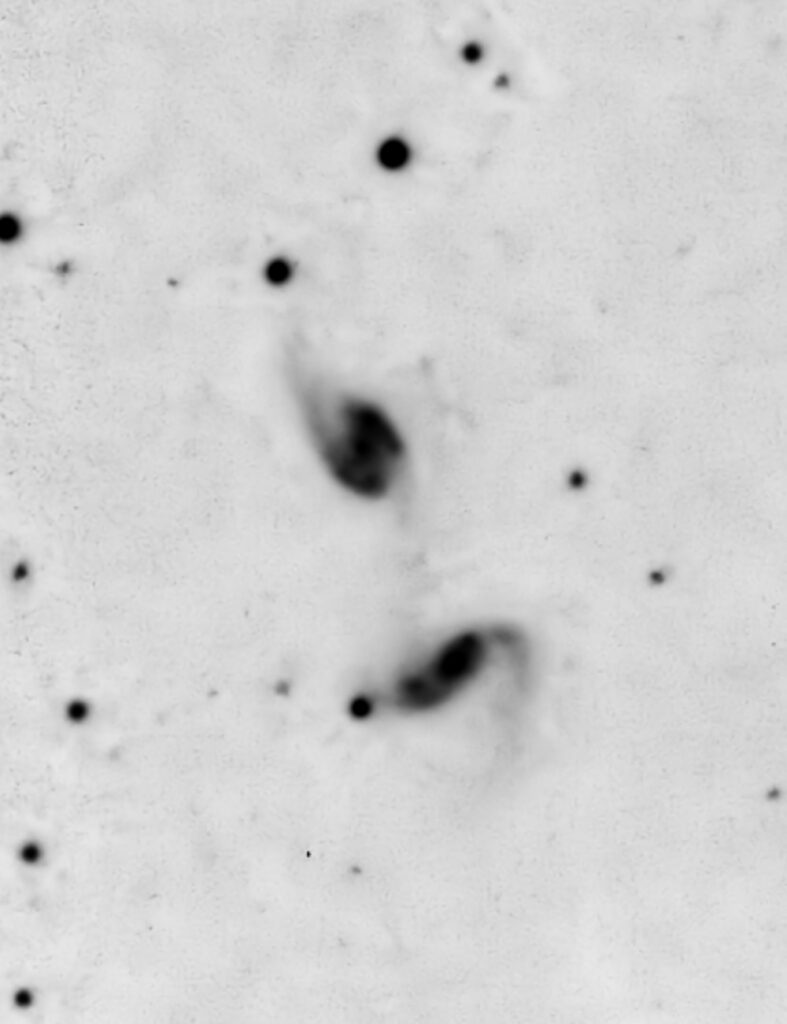 Challenging observation given hugely bright Seyfert nucleus and Arp’s ambiguous description of a low surface brightness companion.