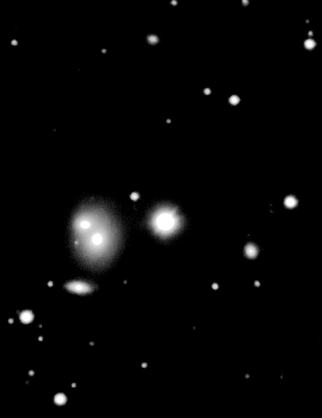 A mysterious cluster of NGC Galaxies with particularly bright nuclei and faint ribbons.